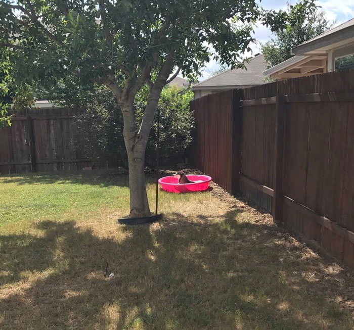 #34 Eu disse pra minha cadela na noite passada o que eu iria deixá-la ir nadar hoje e ela literalmente não se esqueceu. Agora preciso encher sua piscina