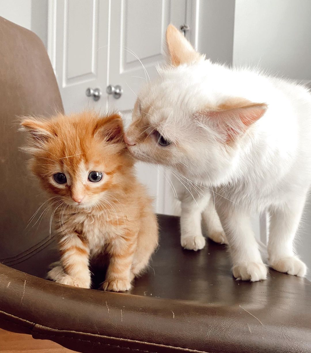 Uma gatinha ruiva em situação de rua fez amizade com um gato domesticado e, aos poucos, não só conquistou a admiração dele, como de toda a sua família.