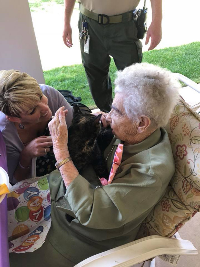 A aposentada norte-americana Lillian Grant recentemente comemorou seus 103 anos de idade e pediu aos seus familiares para que estes lhe ajudassem a adotar um gatinho de presente de aniversário.