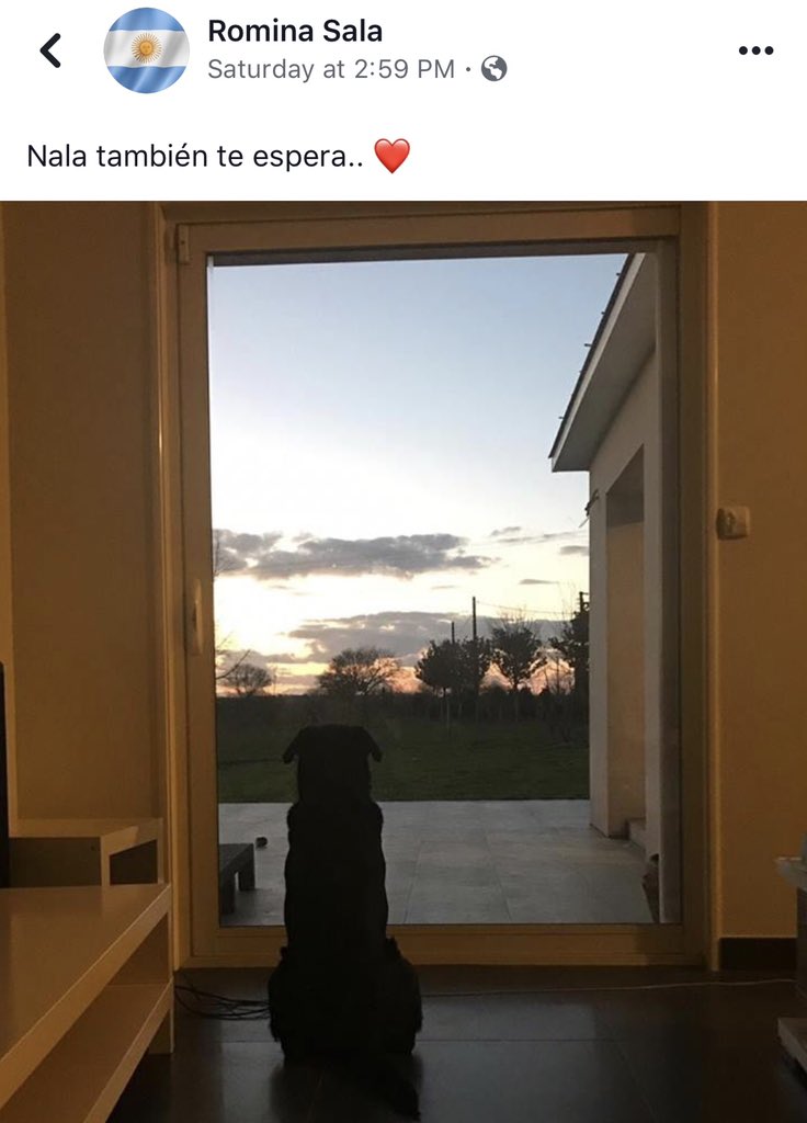 A irmã do atacante do Cardiff City, Romina, compartilhou uma imagem comovente no Facebook do cachorro Nala olhando para o vazio.