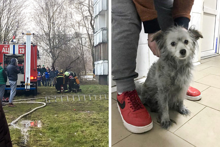 Pequenino animal se agarra a carrinho de compras preso em forte correnteza de água