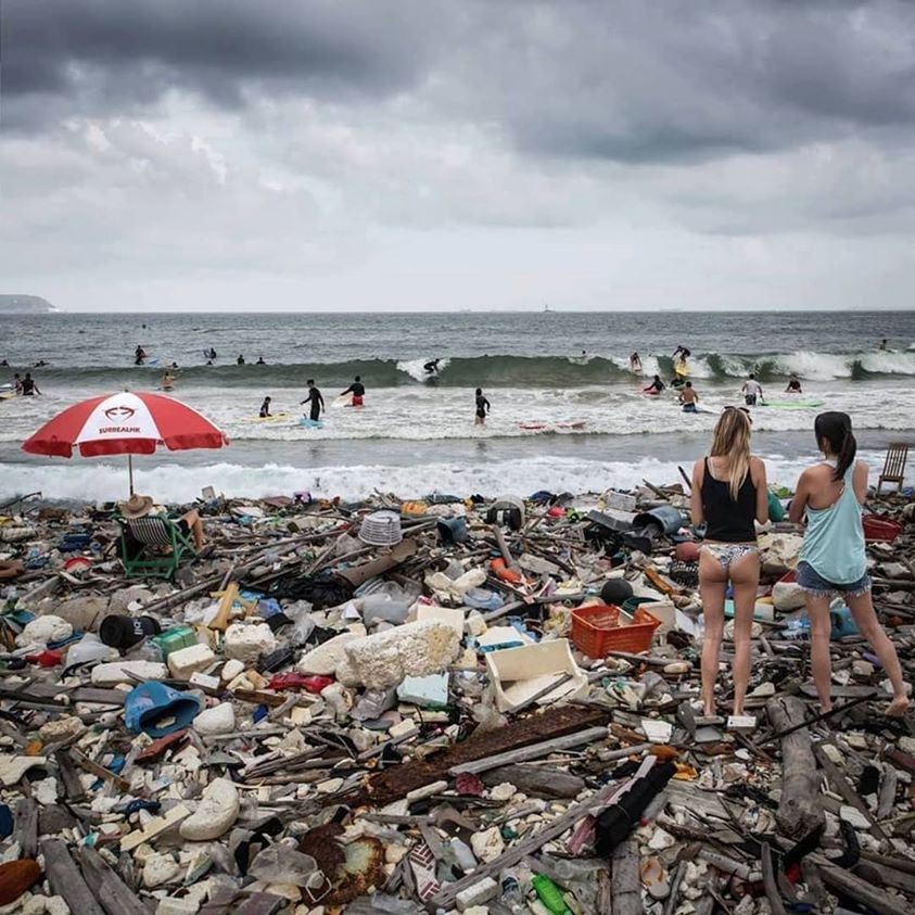 Pequenino animal se agarra a carrinho de compras preso em forte correnteza de água