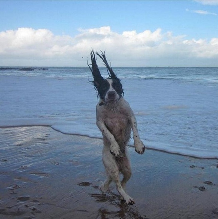 Pequenino animal se agarra a carrinho de compras preso em forte correnteza de água