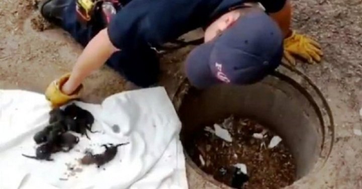 Brian Vaughan, capitão do corpo de bombeiros de um quartel do Colorado, nos Estados Unidos, partiu com sua equipe para resgatar uma ninhada de “cachorros” presa em um bueiro.