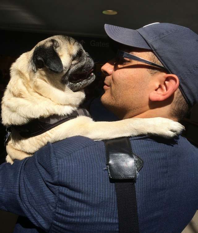 Desde o dia em que Marc resgatou Shorty de um abrigo em Filadélfia, o Pug seguiu seu pai para todo lado. Mas aos 15 anos, Shorty não é tão ágil quanto antes - o que significa ficar em casa mais tempo.