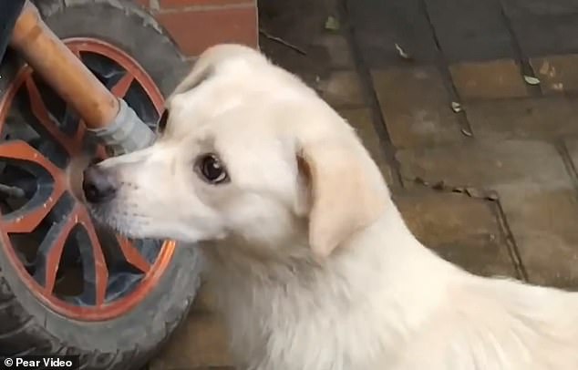 Uma mamãe de coração partido foi obrigada a se despedir de seu filhote depois que ele foi adotado na região central da China .