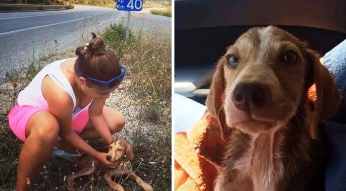 Um filhote chamado Melios foi abandonado em uma movimentada estrada rural na Grécia quando tinha apenas 3 meses de idade.
