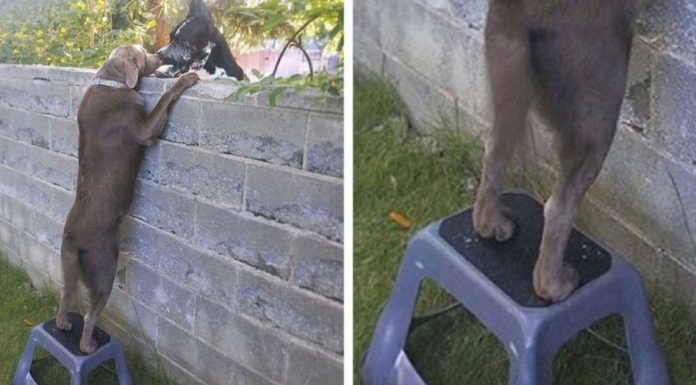 Como cães de grande porte que são, os dogues alemães Vito e Bambino conseguem espiar por cima do muro de sua casa sem maiores...