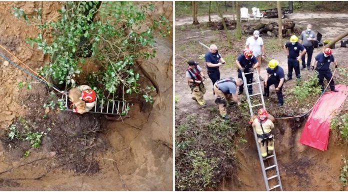 Um grupo de bombeiros de High Springs, na Flórida (EUA), precisou correr contra o tempo para salvar um cão da raça golden retriever que...