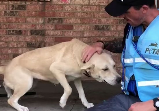 A equipe da PETA levou o cachorro para uma área previamente preparada por toda a equipe de emergência, para que de lá o cachorro pudesse ser levado para um abrigo nas proximidades.