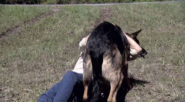 No entanto, aparecendo praticante do nada, um enorme cachorro se aproximou e percebeu, de alguma forma, que ela precisava desesperadamente de ajuda; o animal correu imediatamente em busca de alguém que pudesse socorrer a mulher.