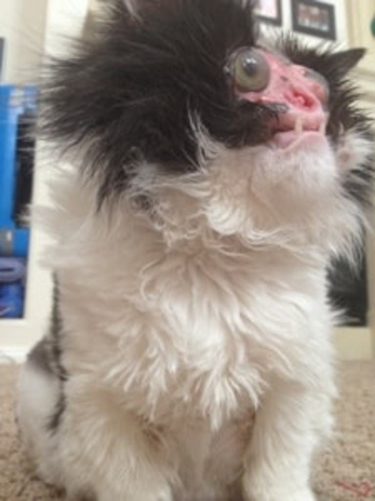 Ele sofreu um acidente em 2005, quando tinha apenas 4 semanas de vida, que fez com que o gato ficasse desfigurado e precisasse de passar por vários procedimentos cirúrgicos.
