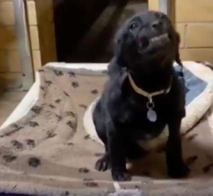 Após alguns dias juntos, Sarrah começou a perceber que sempre que alguém falava com Burreaux em voz alta, dizendo que ele era um bom menino, o filhote imediatamente mostrava os dentes em um grande sorriso.