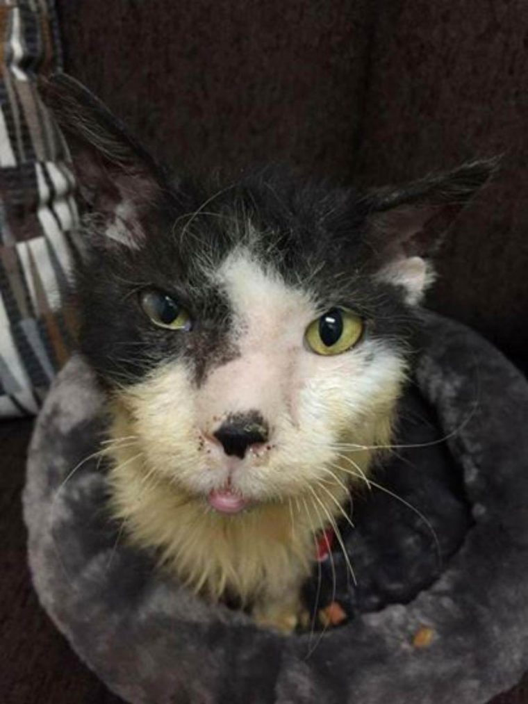 No entanto, alguém do abrigo quis publicar uma foto do gato nas redes, para mostrar o quanto lhe fizeram sofrer. E graças a essa mensagem, Leslie Raines, uma mulher que trabalha em uma clínica veterinária local, decidiu ajudar.