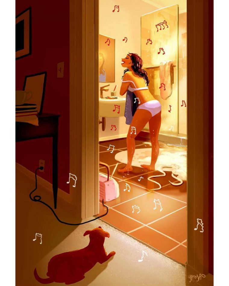 Pequenino animal se agarra a carrinho de compras preso em forte correnteza de água