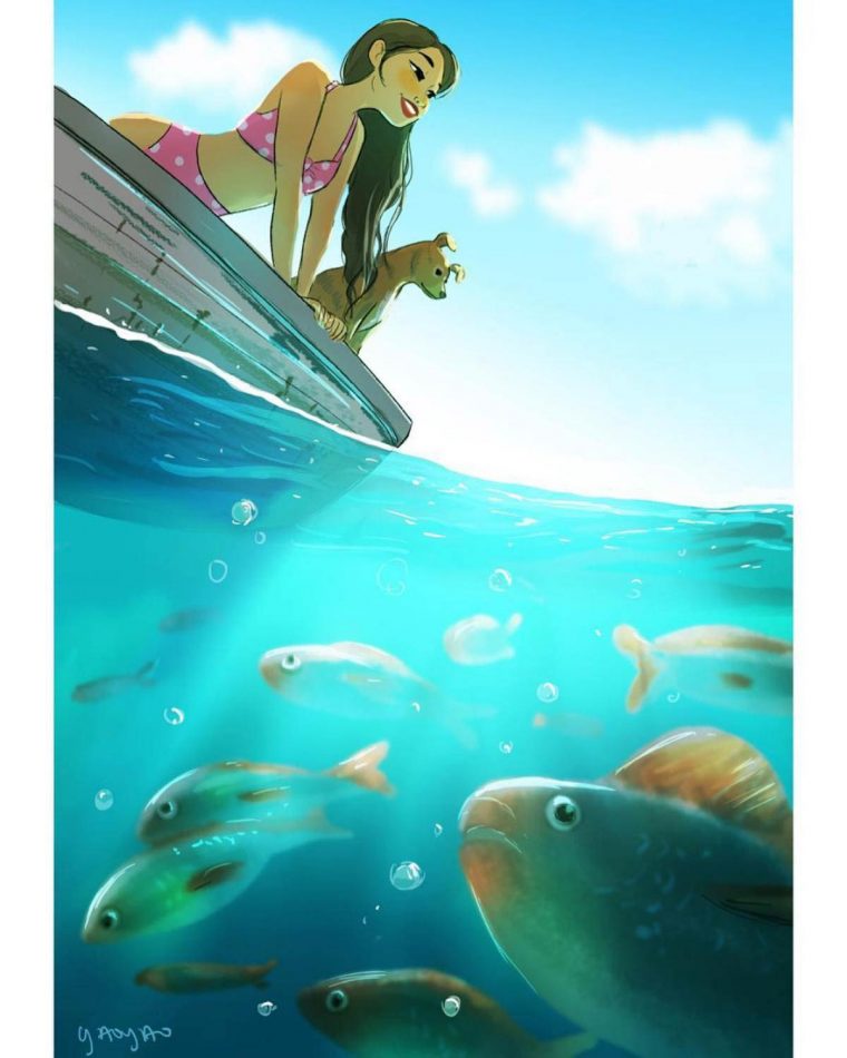 Pequenino animal se agarra a carrinho de compras preso em forte correnteza de água