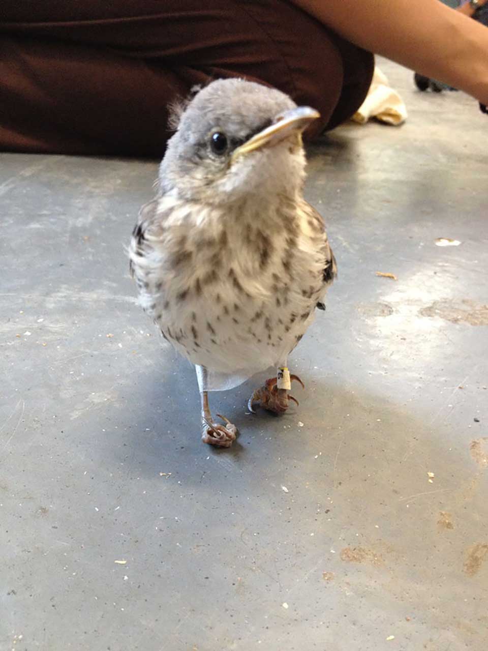 Um passarinho com deficiência foi resgatado pela equipe da ONG norte-americana California Wildlife Center (CWC) enquanto perambulava com bastante dificuldade pelas ruas.