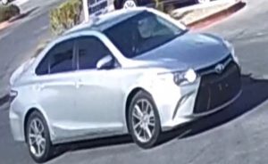 “O vídeo de uma câmera de vigilância mostrou o motorista de um veículo descartando dois cães dentro de uma lixeira. O veículo é um Toyota Camry prateado, possivelmente um modelo de 2015. O veículo tem dois arranhões. Um arranhão está no pára-choque dianteiro do passageiro e o outro no pára-choque traseiro do passageiro."