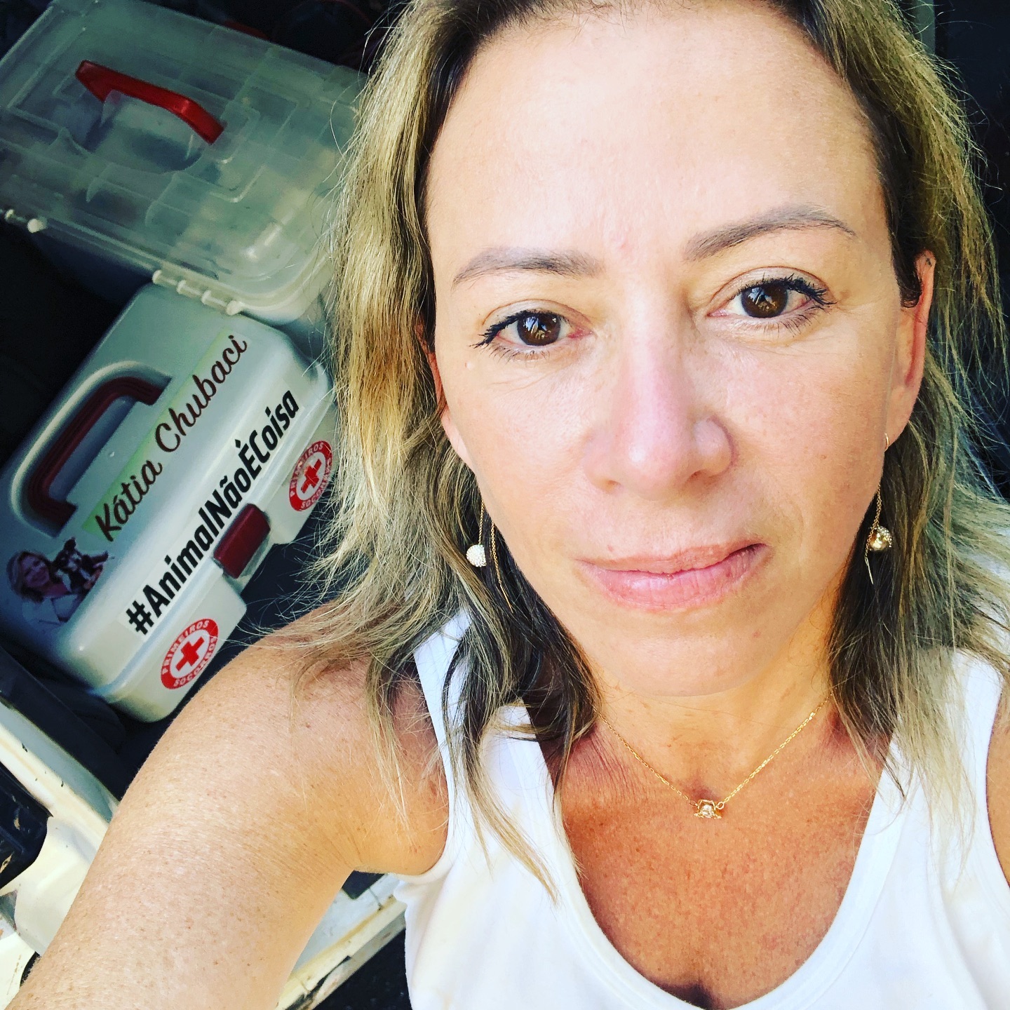 A veterinária Kátia Chubaci (acima na foto), não conseguiu ficar indiferente a toda essa situação e colocou mãos à obra, conseguindo doações de medicamentos para serem usados no tratamento dos animais em Brumadinho.
